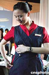 国泰航空18日在半岛酒店展示即将更新的员工服装。国泰航空的机舱服务员及香港地勤人员将于明年三月换上即日展示的新装。作者:宋吉河