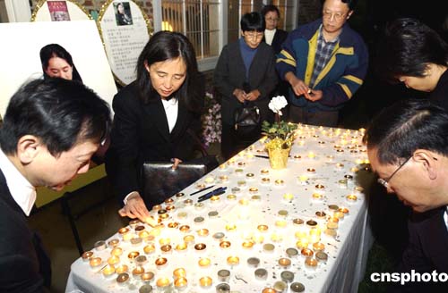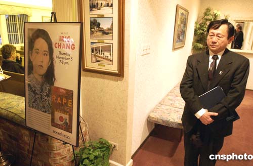 世界抗日战争史实维护联合会副会长丁元参加追悼仪式送别张纯如。作者:陈钢
