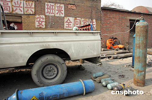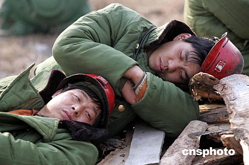 河北省邢台沙河市白塔镇李生文联办矿等五个铁矿十一月二十日发生井下特大火灾事故。截止到二十一日中午,已有四十八名矿工被救出,其中九人遇难,至少有五十八人仍被困井下,生死不明。中新社记者:武仲林