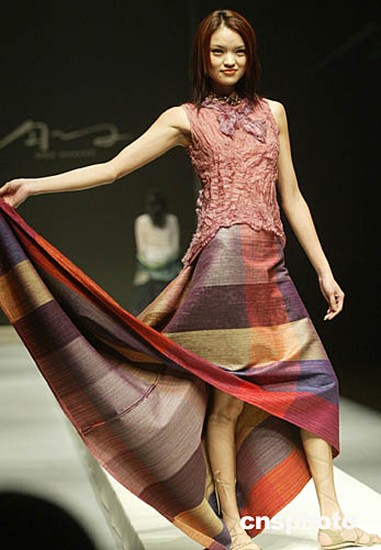 十一月二十一日,日本顶级设计师罔正子时装发布会在北京饭店举行,罔正子设计的时装以注重实用而著称。中新社记者:史利
