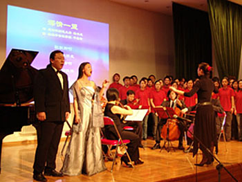 艺术专业留学生们献上了主题为“人间自有真情在”的精彩文艺节目。晚会分为“追思”、“归来”和“展望”三个单元。大合唱《深情一望》,寄托了对逝者的无限哀思,引人垂泪。音乐剧《归来》和一曲“说句心里话,使馆就是咱的家……”赞扬了使馆工作人员忘我救助伤员的动人事迹。女生独唱《亲吻祖国》饱含对祖国的深情厚爱和对美好未来的无限憧憬,将整个晚会推向高潮。