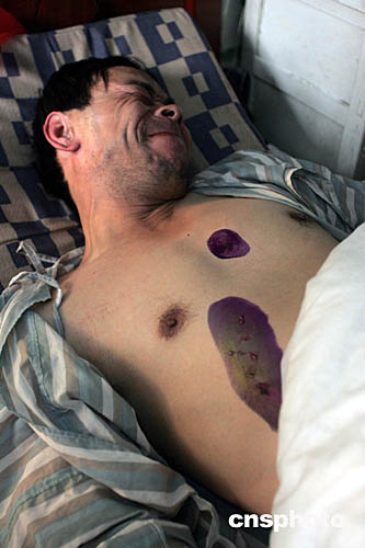 十一月二十二日,在“11.20”河北省邢台市沙河矿难中受伤的陕西籍矿工李国友在医院接受治疗。矿难发生后他在矿下坚持了二十多个小时,并协助挽救了十七名矿工的生命。