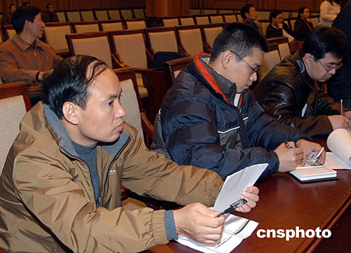 11月23日中午,11.21空难事故调查组在包头宾馆举行第二次新闻发布,遇难者家属王先生旁听发布会以了解最新进展。中新社记者:张宇