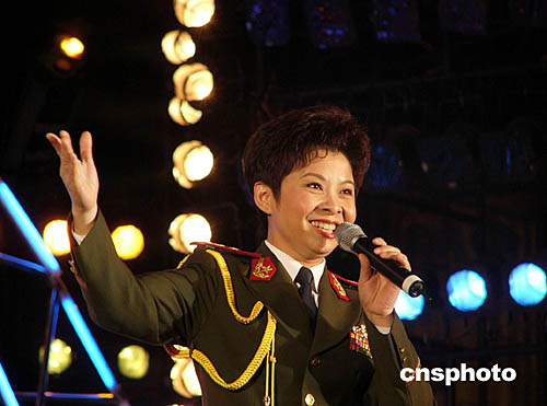 “中国金柚之乡”广东省梅州市梅县22日晚在梅县人民广场举行盛大焰火烟花文艺晚会,庆祝第三届金柚节隆重开幕,吸引了近万名海外侨胞和市民参加。图为中国著名歌手董文华为侨乡父老带来了经典的《春天的故事》。作者:卜瑜