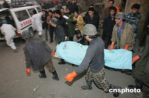 罐车又下去两次装了约十名矿工上来,记者在调查中了解到,当矿车第三次下去的时候,就再也没能上来了。或许是情况紧急的原因,罐车在井底起步的地方脱道,但是钢缆拖着罐车依旧爬行了一百多米,在四平与三平之间的位置再也不能动弹。有人告诉记者,在离井口几十米的地方,搜救队发现了处于爬行姿态的一个死者,他应该就是从脱道的罐车中下来,沿着轨道爬上来的那个人。