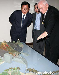 台北“故宫博物院”将投入数十亿元新台币在嘉义县建分院。在公开竞逐中,来自美国的著名建筑师Antoine Predock最终胜出。图为十一月二十四日,Antoine Predock(右)介绍他所设计的“故宫分院”。中新社记者:董会峰
