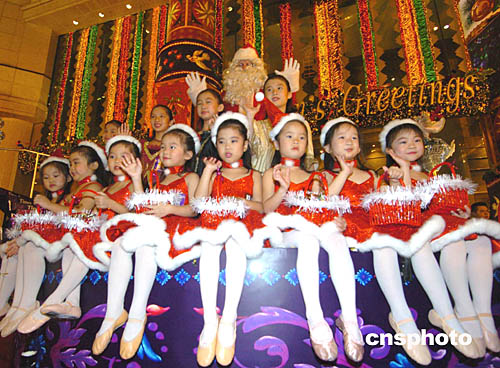 香港时代广场2004圣诞月24日晚拉开序幕﹐今年的圣诞节装饰以《闪烁时代梦幻曲》为主题。中新社记者:赵振清