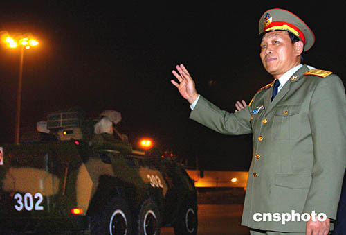 解放军香港驻军部队副司令员董文久少将,11月25日凌晨到军营慰问即将进出香港的部队官兵,勉励他们时刻听从祖国召唤。