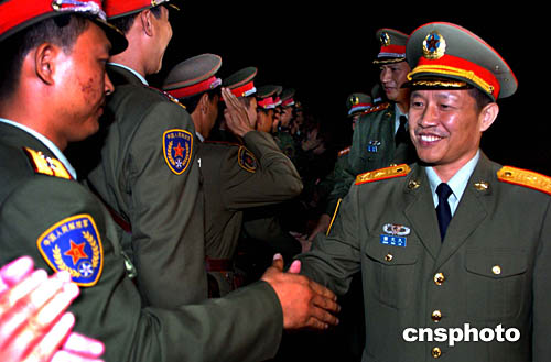 解放军香港驻军部队副政委李文潮少将,11月25日凌晨在落马洲口岸欢迎先头进港的轮换部队。