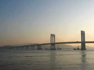 澳门特区政府于二○○二年八月初决定把设计及建造第三大桥的承揽工程判给由国家著名建桥企业组成的“中铁———大桥联合体”,造价为五亿六千多万元,大桥的设计及建造要求在28个月内完成。由于工程进展顺利,大桥提前两个月竣工。