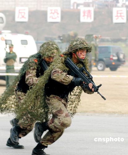 11月26日,代号为“钟山--2004”的江苏省大规模反恐怖综合演练,在武警南京指挥学校训练基地举行。此次演练由当地公安、武警、消防、解放军等多兵种、多部门参加,进行了人质反劫持、化学恐怖袭击处置、机器人排爆等10余个课目的协同联合作战演练,全面展示了江苏军警处置暴力恐怖等突发性事件的能力和水平。作者:郎从柳