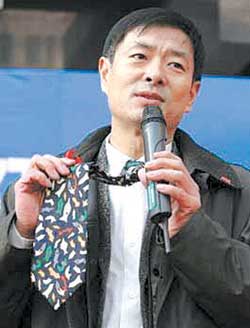 演讲行将结束时,复旦学子对濮存昕的安全套领带兴趣渐渐浓厚起来,主持人代表复旦大学红十字会向他“索要”那条安全套领带,不过由于这条领带是他从泰国带回来的珍藏品,不便赠人,濮存昕只得改送一只印有他本人卡通形象的安全套。