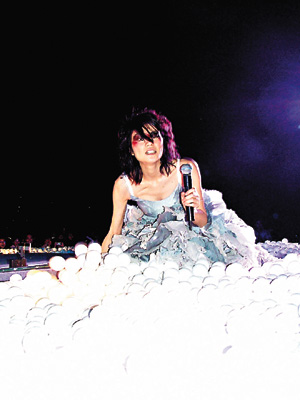 王菲的演唱会不会有变化多端的舞蹈或性感,但这晚她兴之所至唱《精彩》时,赤脚跑到台前的“波波池”玩,更把白色波波抛给观众,自己又因为站不稳两度跌在池中,还开心地大笑,有如一个小朋友般顽皮。同时台上又出现了漫画版的王菲,这段漫画是代替了之前一段读白,因为每次播完该片段都让人误会她打算退出,故主办单位决定换掉。荧幕上出现的漫画版王菲,肥肥白白,因为“阿菲”一向都渴望自己可以胖一点。演唱会以《人间》一曲结束,虽然歌迷热情地大叫安哥,但向来没有安哥习惯的她,以超过五分钟的时间向观众深深鞠躬,代表了她对歌迷的谢意。