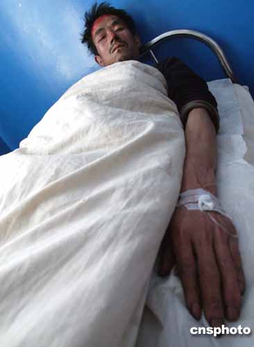 图:幸免遇难的陈家山煤矿矿工接受治疗