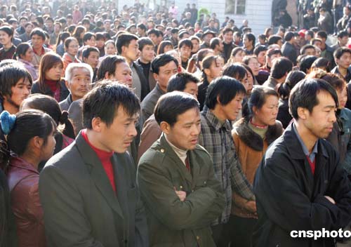 十一月二十九日下午,大批被困井下、下落不明矿工的亲属在发生瓦斯爆炸事故的陕西铜川矿务局陈家山煤矿外焦急等待亲人的消息。作者:任晨鸣