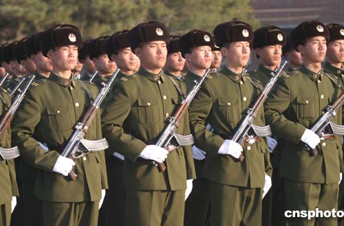 十二月一日,经中央军委批准,中国全军部队士兵和部分军校学员开始统一换发用仿毛面料制成的零四式士兵冬常服。明年五月,士兵将换发用同一材料制成的新式夏常服。作者:王利军