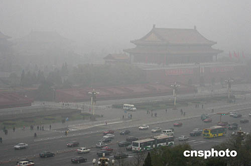 十二月二日清晨,北京天安门城楼和长安街笼罩在浓重的雾气当中。北京连日来遭遇大雾天气,首都机场众多飞机航班延误,京开、京沈、京津、京石等高速公路相继关闭,城市道路能见度降低,交通事故明显增多。中新社记者:毛建军