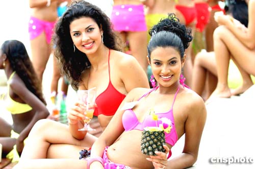 在12月4日举行第54届世界小姐总决赛前夕,为拍摄宣传短片,各国美女身着泳装在三亚开沙滩派对,尽情感受三亚热情风情。作者:喜来登