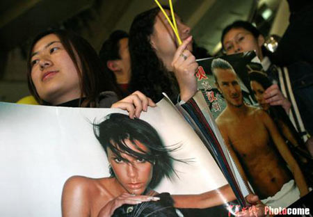 12月1日晚,怀胎7月的维多利亚作为精英模特大赛的评委再次抵达上海,机场有近百名歌迷迎候。图片来源:中青在线