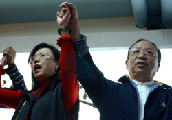 此外,章孝严也提出三点期许,希望泛蓝在第六届“立委”选举中大获全胜,国民党“国会”席次稳定过半;“国民党”、“亲民党”、“新三党”在明年春天无条件合并;国民党能于2008年取回“政权”。