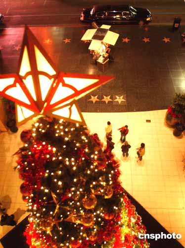 十二月伊始的美国好莱坞星光大道旁,高大的圣诞树点缀出岁末佳节的喜庆气氛。作者:贾国荣