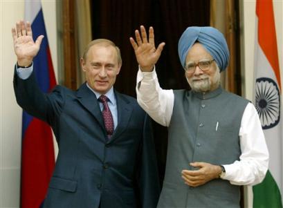 在3日普京与印度总理辛格的会晤后,双方举行了联合新闻发布会。普京表示,俄罗斯将支持印度跻身联合国安理会常任理事国行列,称对此将不会行使一票否决权;辛格则表示,印度全力支持俄罗斯加入世贸组织,称俄为世贸148个成员国以外最大的经济体。