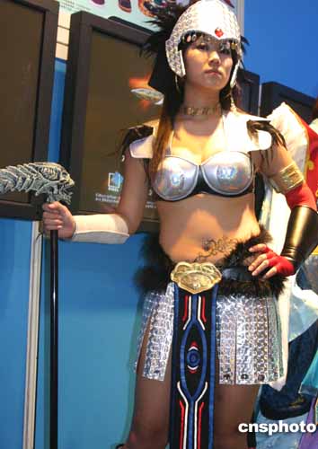 网络游戏《刀剑online》中的“妖女”原型,十二月四日在台北资讯月活动期间亮相。该游戏引自北京业者,在大陆十分火爆,充满古老中国的神幻和武术技巧。作者:董会峰