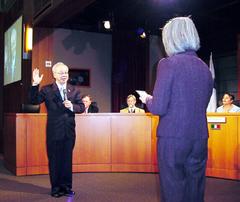 中新网12月6日电 在美国圣他克拉拉县高等法院法官尤治玉的监誓下,2日晚,郭树培宣誓成为库比蒂诺市长,成为库比蒂诺继张锡宏之后另一位亚裔市长。