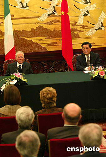 图:胡锦涛与意大利总统钱皮共同会见记者