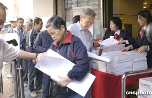 中新社香港十二月六日电 香港首个房地产基金“领汇房地产投资信托基金”,今起派发申请表接受市民认购。因回报息率高等因素,领汇基金一直受捧,有市民一大早即到发表的银行外排队等候。