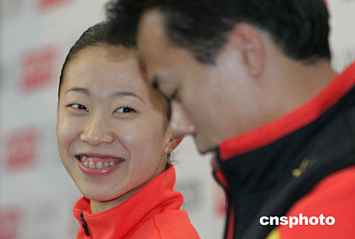 | 二零零四年十二月十六日到十九日,世界花样滑冰大奖赛总决赛将在北京首都体育馆举行,来自中国、美国、加拿大等八个国家的三十六名优秀选手将角逐双人滑、冰舞、男单、女单等四个项目的金牌。中国的三对双人滑选手申雪/赵宏博、张丹/张昊、庞清/佟健和一名男子单人滑选手李成江进入总决赛。由于米尼娜/马列宁的缺阵,中国选手申雪/赵宏博目前一支独秀,如无意外,双人滑冠军应是他们的囊中之物。图为申雪/赵宏博十二月七日在新闻发布会上。中新社记者:武仲林