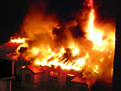 “火苗从屋顶往上喷,并向西边液化气站蔓延。”住在3楼的学生说,他们撤到学校的操场上,听到第一次爆炸声。隔了10分钟后响起了第二次爆炸声。