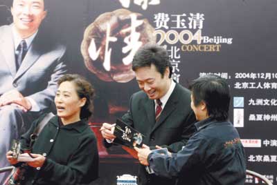 中新网12月9日电 据北京娱乐信报报道,明(10)天晚上,“款款深情——费玉清2004北京演唱会”即将在工人体育馆上演,费玉清将现场演唱近50首怀旧金曲。从上世纪30年代的《夜来香》等直到80年代末的《船歌》,费玉清演唱会可以说是对大半个世纪来国语流行曲的一次最全面的回顾。在年底一系列的演唱会中,这次个唱被认为是一场“可以坐着听的演唱会”,如果对照着国语流行音乐跌宕起伏的发展欣赏费玉清的演唱,这场个唱确实也多了一层坐看潮起潮落的韵味。