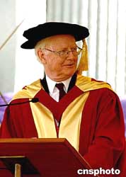 一九九六年诺贝尔经济学奖获得者的J James A Mirrlees爵士,12月9日获香港中文大学社会科学博士。作者:宋吉河