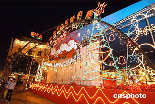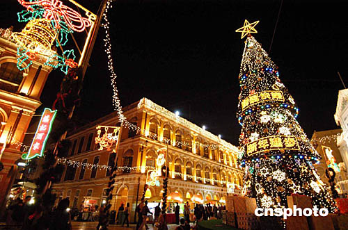 十日,澳门举行“圣诞及新年节日亮灯”仪式,是晚全澳的节日灯饰同时点亮,令澳门洋溢着浓厚的节日气氛。作者:梁永强