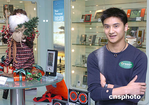 中国跳水金牌选手田亮11日来到香港时代广场8层电子产品专卖店﹐为该店圣诞节礼品促销造势。中新社记者:赵振清
