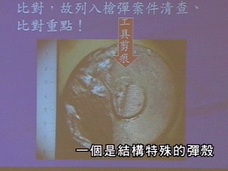 台湾“中国时报”今日头版的位置报道说,项目人员是在11月底,根据刑事局提供的分析资料、借讯在押的拥枪嫌犯,并循线查出台南的一个枪械制造集团所制造贩售的子弹,和项目人员在“319枪击案”现场寻获的2颗弹壳完全相同,因而前往缉捕,一举捕获5名嫌犯,主嫌坦承,“319枪击案”现场发现的弹壳是他们所制造贩售的,随后并带警方起出制造工具。