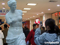 2004年12月13日,84件法国卢浮宫雕塑艺术品的复制品在北京免费展示。展览在家乐福的中关村广场举办,为期8天,为北京的普通消费者增加一个近距离了解法国国宝的机会。作者:张硕