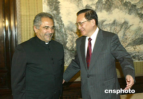 中国国务委员唐家璇十二月十四日在北京中南海会见来访的东帝汶外交部长奥尔塔。中新社记者:史利