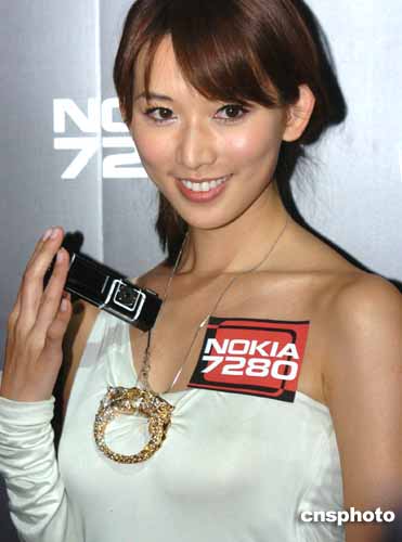 台湾名模林志玲14日晚在香港会展中心为诺基亚7280流动电话推出造势。作者:赵振清