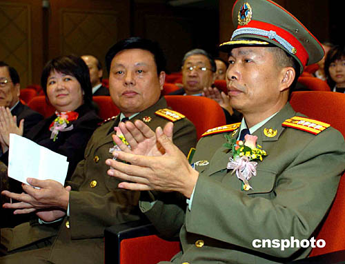《红五星·白莲花》在澳门濠江中学隆重举行首映式,驻澳门部队副司令员黄文科大校(右)参加了首映式仪式。