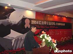 中国红丝带二ΟΟ四年预防艾滋病公益论坛十二月十五日在北京召开,受到过中国国家领导人胡锦涛主席看望和社会各界支持关爱的“艾滋名人——老纪”应邀来到论坛发言,以亲身经历讲述自己阻止艾滋病进一步传播的体会。作者:周丹钰