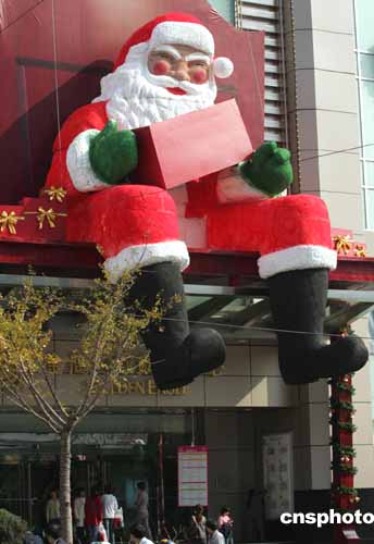 图:巨型“圣诞老人”坐阵申城商厦招揽顾客