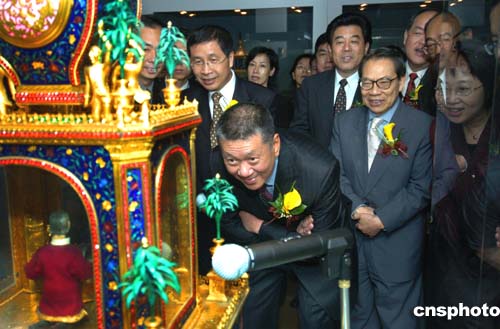 行政长官何厚铧看得特别仔细,不时问工作人员这是什么国家制造的,是哪一年流入中国。在一座英国十八世纪出产的铜镀金升降塔钟前,何特首问身旁的故宫博物院的李副馆长,这升降塔如果零件坏了怎么办?李副馆长说,这都是手工制品很精细,现在坏了英国也找不到做零件的师傅,所以很少开动。何特首表示这些珍品要好好地保护。