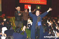 今天下午,澳门劳工子弟学校举办庆祝回归五周年活动。奏国歌、民族舞蹈、武术与古筝表演、大合唱,活动丰富多彩。潘建英、潘曼霞、牟琴三位嘉宾的出现,赢得现场近千名师生的热烈掌声,更把活动推向高潮。