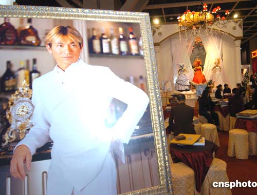 香港第37届圣诞婚纱及结婚用品展17日在会展中心开幕﹐是次展览云集了200多个参展商﹐当中包括婚纱摄影﹑婚纱晚装等用品﹐“刘德华”到场为圣诞婚纱展作宣传。作者:赵振清