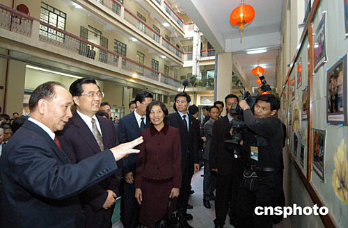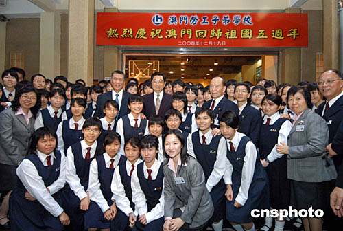 中新社澳门十二月十九日电(记者董会峰)今天下午四时三十分,国家主席胡锦涛来到澳门劳工子弟学校视察,受到该校师生热烈欢迎。