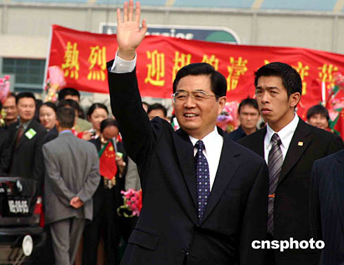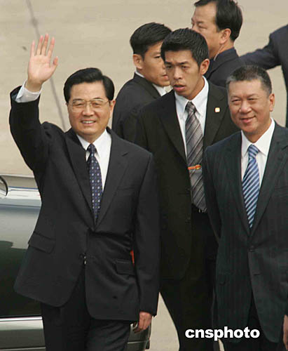 胡锦涛主席抵达澳门出席澳门回归五周年庆典
