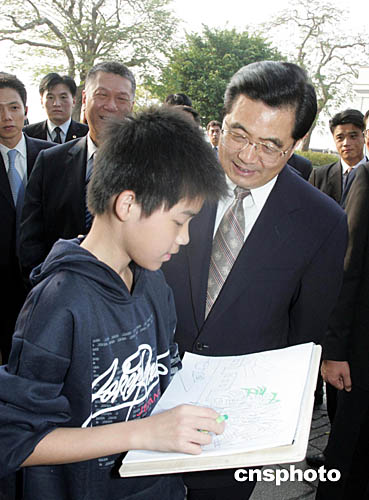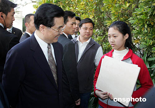胡锦涛主席在参观澳门著名景点大炮台时,与在现场写生的一位澳门儿童交谈,并祝他长大后成为一名画家。
