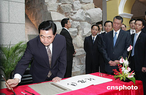 胡锦涛主席在参观澳门博物馆时欣然题字。